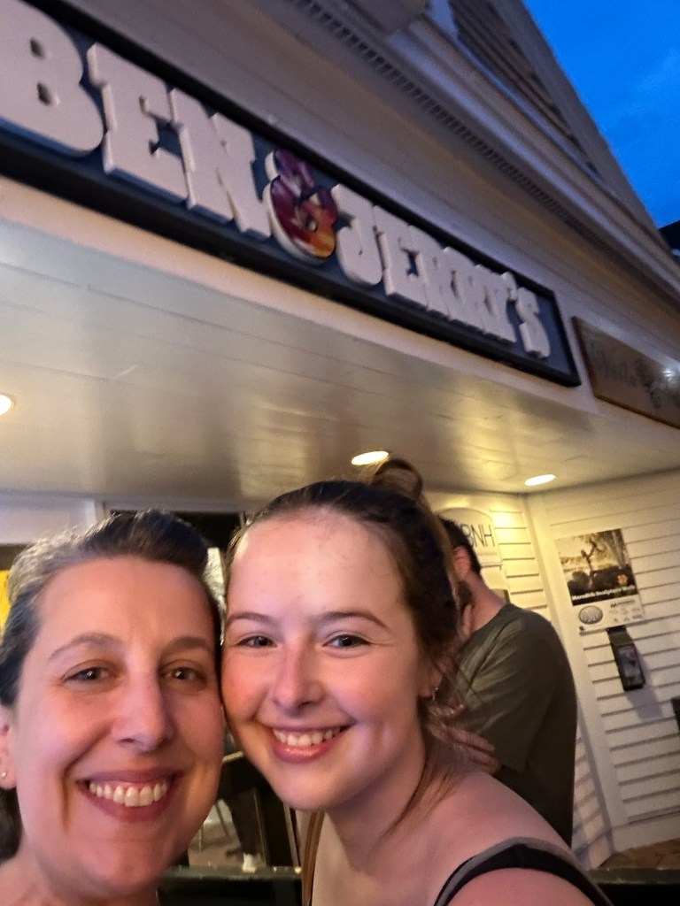 And so it was that on the Fourth of July, Sierra and I took Sam to get a fourth of her tail taken off at an emergency vet in Meredith. Our appointment was at 8pm and the crowds gathering for fireworks were immense. We got Sam settled at her appointment, signed the papers, and passed the time by going to get ice cream at Ben and Jerry’s along with one hundred other people……
