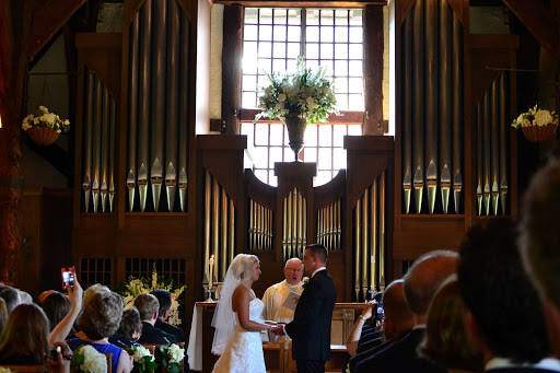And we weren’t the only ones, late, either, about 8 other people had also had trouble finding the place.  We all waited until the bride had walked the aisle and then we were able to enter the beautiful chapel.  Rich and I sat on the left in the very last row.  I sat on the end next the aisle and was able to take pictures throughout.  We had little Sarah Joy with us and she loved seeing the pretty ladies all dressed up.  It was hot, no air conditioning, but the ceremony was lovely.