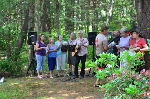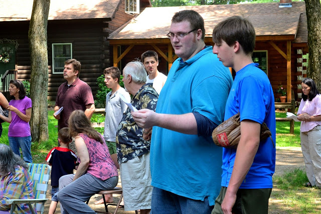 There was a pond in which to do baptisms.  The music guys set up the sound system so we could sing hymns.  Here is Caleb (closest to camera, with Rich, Seth F., Ethan, and others, all singing).