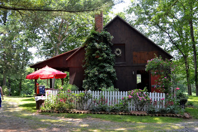 This is the orchard shop.  During the picnic, the food tables are set up outside and the desserts are inside.  I love the white picket fence with pink flowers planted in front of it.