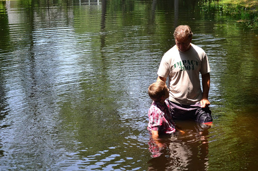 After the first baptism, we sang a couple more hymns.  This is big Mike, with my oldest boy, Jacob.  Ethan is in the background, too.