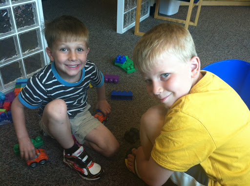 At the dentist, Caleb and Seth were playing with big lego cars that they found in the waiting room toybox.  Seth made me laugh when out of the blue he said to Caleb, “Can you fix my bottom?  It isn’t working right.”  It took me just a second to realize he meant his car was falling apart.