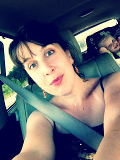 On the way home, I took a self portrait and Sarah laughed.  The children all fell asleep and we stopped at the mall to eat at the food court.  I had a strawberry poppyseed salad from Panera.