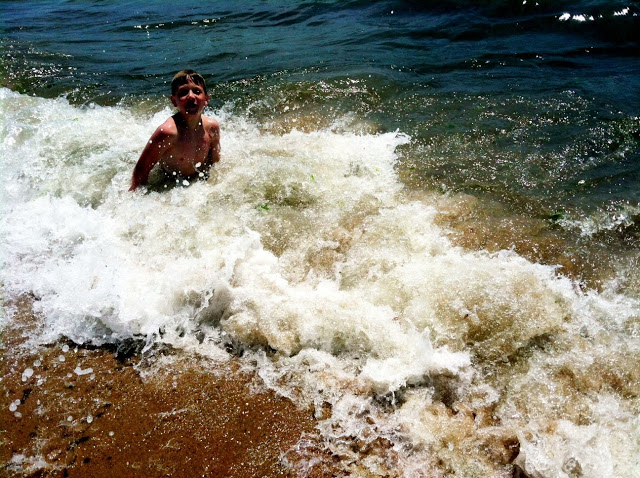 David also is like a fish.  He can swim very very well and never uses a life jacket anymore.  He swam and swam.  Rich and I smiled to watch him (without him knowing).  I do think one of the best parts of parenting is getting to observe the children unnoticed.   David was the only one who wanted to go back to the beach the very next day.  Even though he got up with puffy, red eyes (from the water).