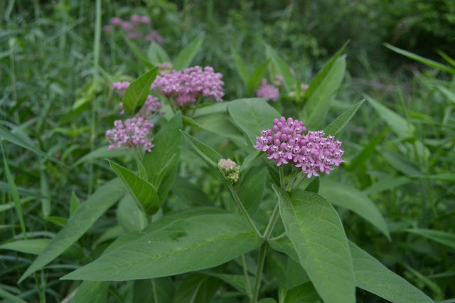Today I searched the wildflower book for this blossom.  It is currently growing down at the stream and the butterflies love it.  I thought I had identified it as a Spotted Joe-Pye Weed, but the leaves did NOT smell of vanilla when crushed.