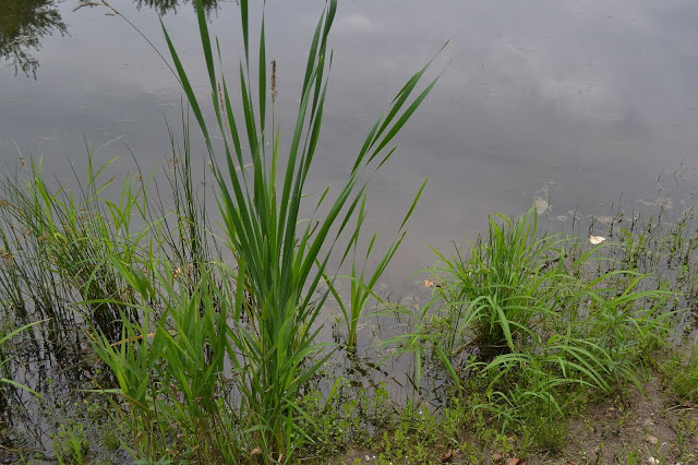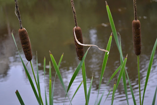 Charming cattail, growing by the pond.  The one in the middle is wearing a flowing scarf.
