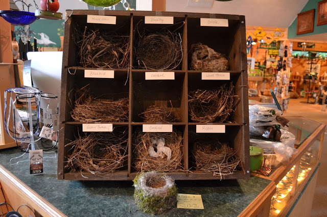 Mom and I loved this display of real bird’s nests, at the bird store.  Each nest was labeled.