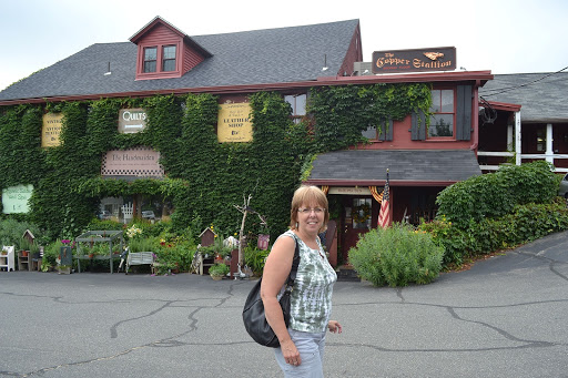 mom, just outside a little shopping plaza.  I loved the ivy on the buildings.  we found a fabric store, and an antique store.