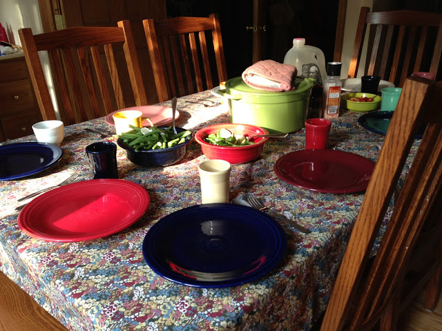 Grace set the table in fiestaware and we all ate around the table as Jacob read us random facts from his new book.