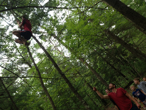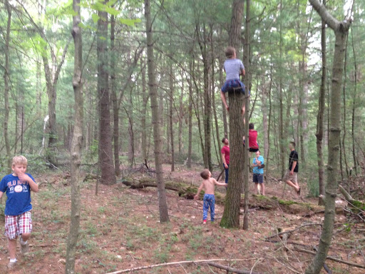 After dinner I did a quick clean up and we all went out into the woods for a family walk. Ethan and David had found blueberries (small, wild ones) growing and they wanted to show them to me. The boys practiced shimmying up trees and I held Sarah Joy’s hand. She is rather Piglet-like (from Winnie the Pooh) and must always have a hand on me, she cries if I start walking and we aren’t connected. After a while, longing for relief from this small but important burden, I passed her to her Papa and would you believe, it turned into a Situation. She would not stop crying for Mama to take her back, even though I was just there, walking with the group, but not attached. Rich wouldn’t hear of it and stopped to talk to her seriously about Being Brave. The interesting thing being, she has been like this since she was a tiny baby! I would carry her in my arms until I got tired and when I passed her to her loving Dad, she would look at me, lean toward me, and wail……she has never “won” but still hasn’t settled herself to be content with poor Rich. Only mama will do for the Ultimate Comfort.