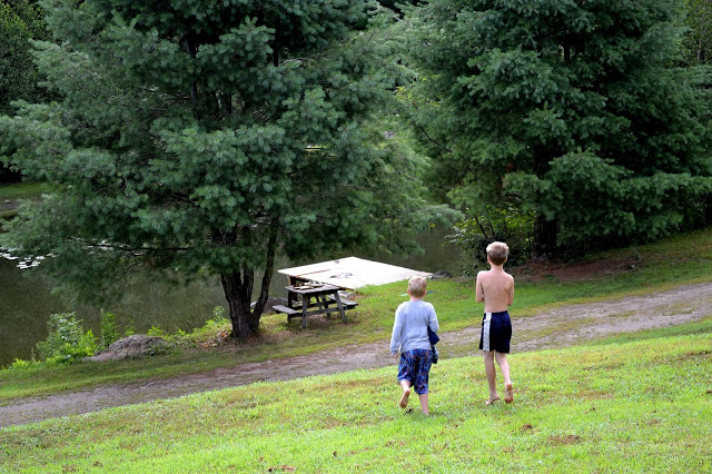 As I was finishing up this post, David and Caleb came inside from swimming.  Caleb had a bloody toe and was moaning and very upset.  “A bass bit him!”  David cried.  “We’re never swimming in that pond again!”