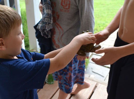 The children all had a great time looking at the frog.  Then David and Caleb marched down to the pond to let him go.  He  now had quite the story to tell.
