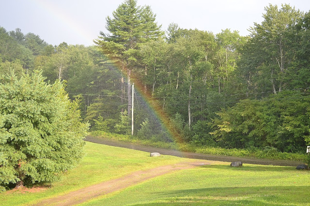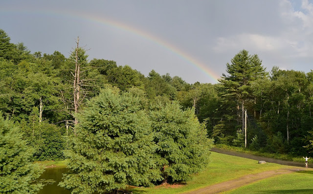 We had a sunny, late afternoon rain here yesterday and a rare treat.  A rainbow appeared, and the end landed right at the bottom of our driveway.  We didn’t find a pot of gold, but David ran down in excitement, and he’s worth more than all the gold in the world to me.