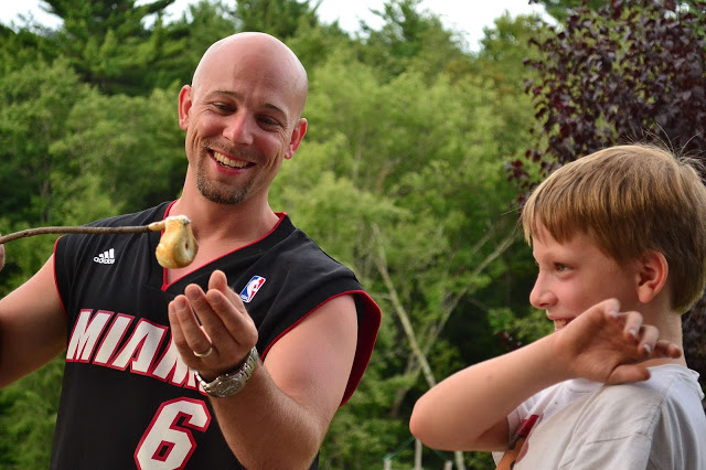 Uncle Jason and Dave went in the woods and collected dry wood for the fire and got a good one started for us.  The marshmallows were a big hit, even three year old Sarah roasted her own.