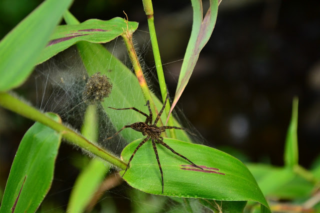 A brown mama spider, guarding her babies.  I’m pretty sure this is a harmless Grass Spider.