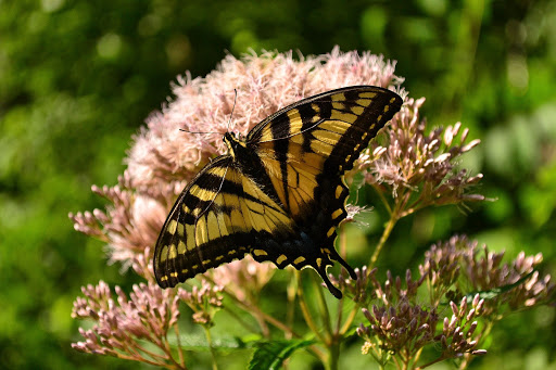Yellow swallowtail butterfly on a lavender Joe-Pie-Weed flower.