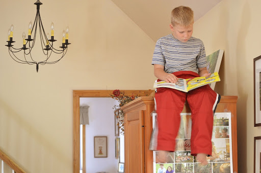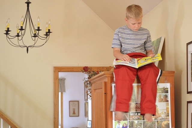 my son Caleb, reading….every time I turn around he’s on top of the armoire