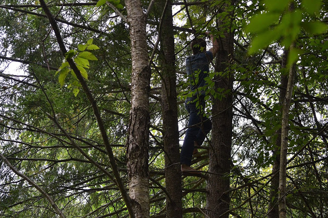 We went for a walk today and noticed the wild grapes were ripening.  These are at the tippy top of a tall tree.