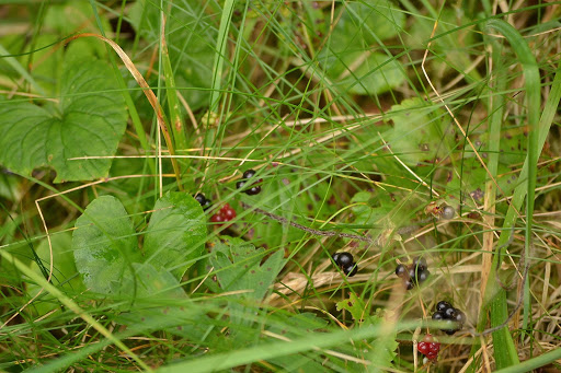 at the edge of the woods we found wild berries rambling through the grass