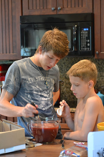 afternoon project; Ethan and Dave made grape juice from the wild grapes