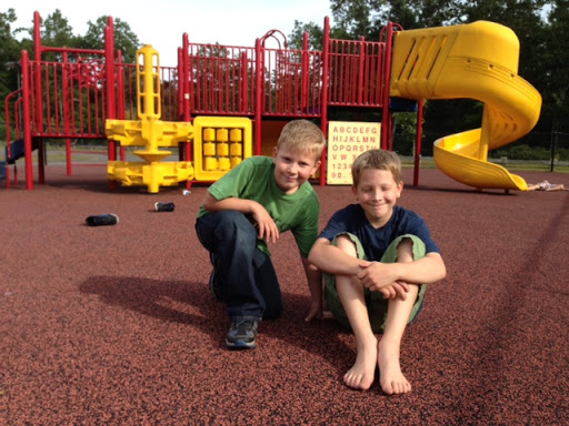 I’ve come to realize that the late afternoons are going to be the busy time of day.  Yesterday David and Caleb got off the bus, ate bagels and got right into the car to go with me to the schools.  We dropped off Grace and then went to the playground until Ethan’s soccer meeting.  It turned out to be a beautiful late afternoon together.  They played for hours out in the bright sun.  I looked through a magazine and then pushed the little ones on the swings…magical….