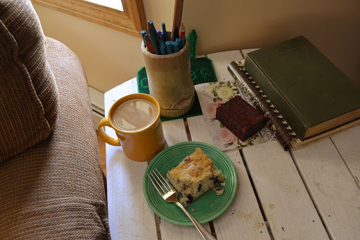 I made a blueberry coffeecake yesterday, so yummy!  I’m enjoying some coffee as I type.