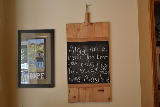 1. Your chickens are funny. Our warm weather is long gone. 48 degrees and raining. I like your chalkboard msg- it would be fitting here, but more as a caution. 😉 Your addition is looking good. Love the coffee (can't wait for a REAL cup) and the coffee cake. And Seth and Sarah are pure cuteness! Love to you all!
