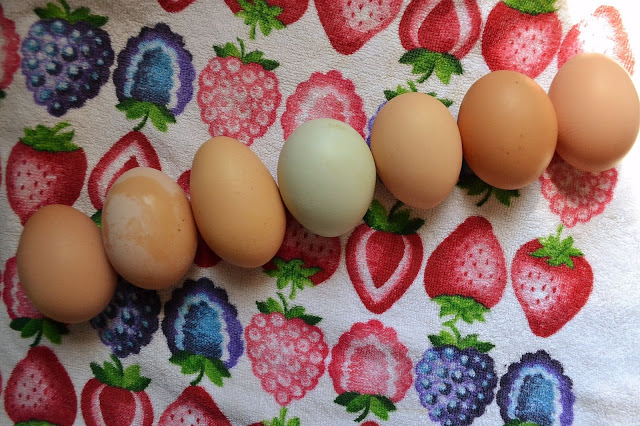 Sometimes the eggs come home looking like this and I have to wash them up.