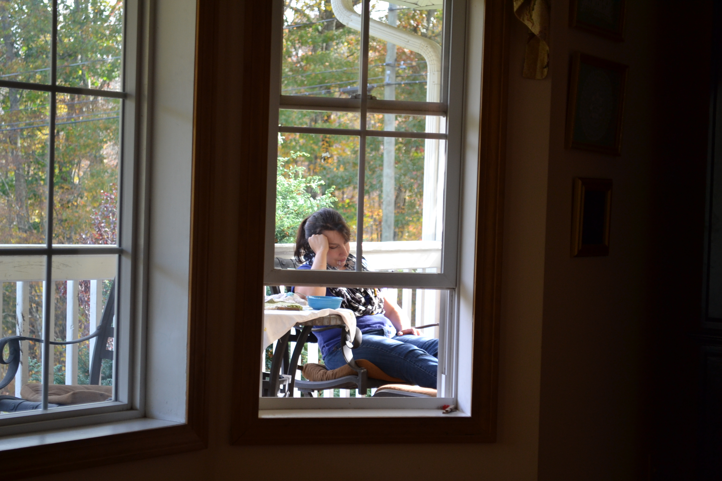 Rich was away from Tuesday to Friday last week, he worked from home on Friday and he took the picture of me….I love it because I think it’s sweet how my body reacts to him being gone and then back home.  When he is gone, God gives me extra strength and energy to take care of things, almost like a caffeine rush.  When he returns, it’s amazing how I completely relax.  When he took the picture, I was outside on the porch watching Sarah Joy play, and could hardly keep my eyes open, I was so sleepy.  Like a contented cat in a sunbeam, is how I feel, when my husband is near.