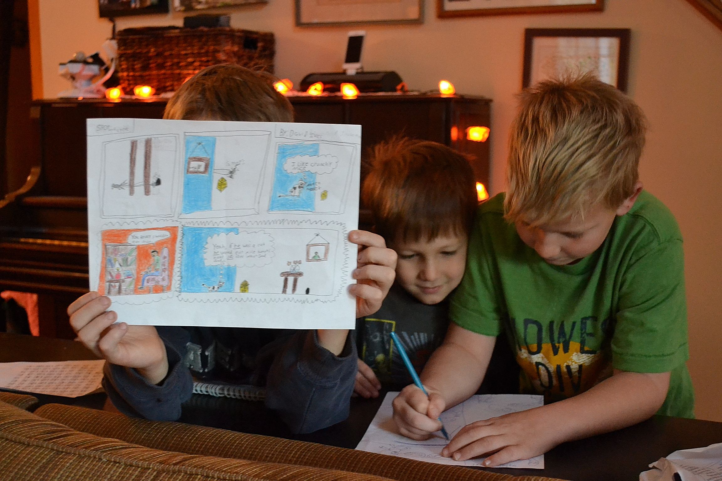 With David’s example, Seth and Caleb are busy making cartoons now, too.