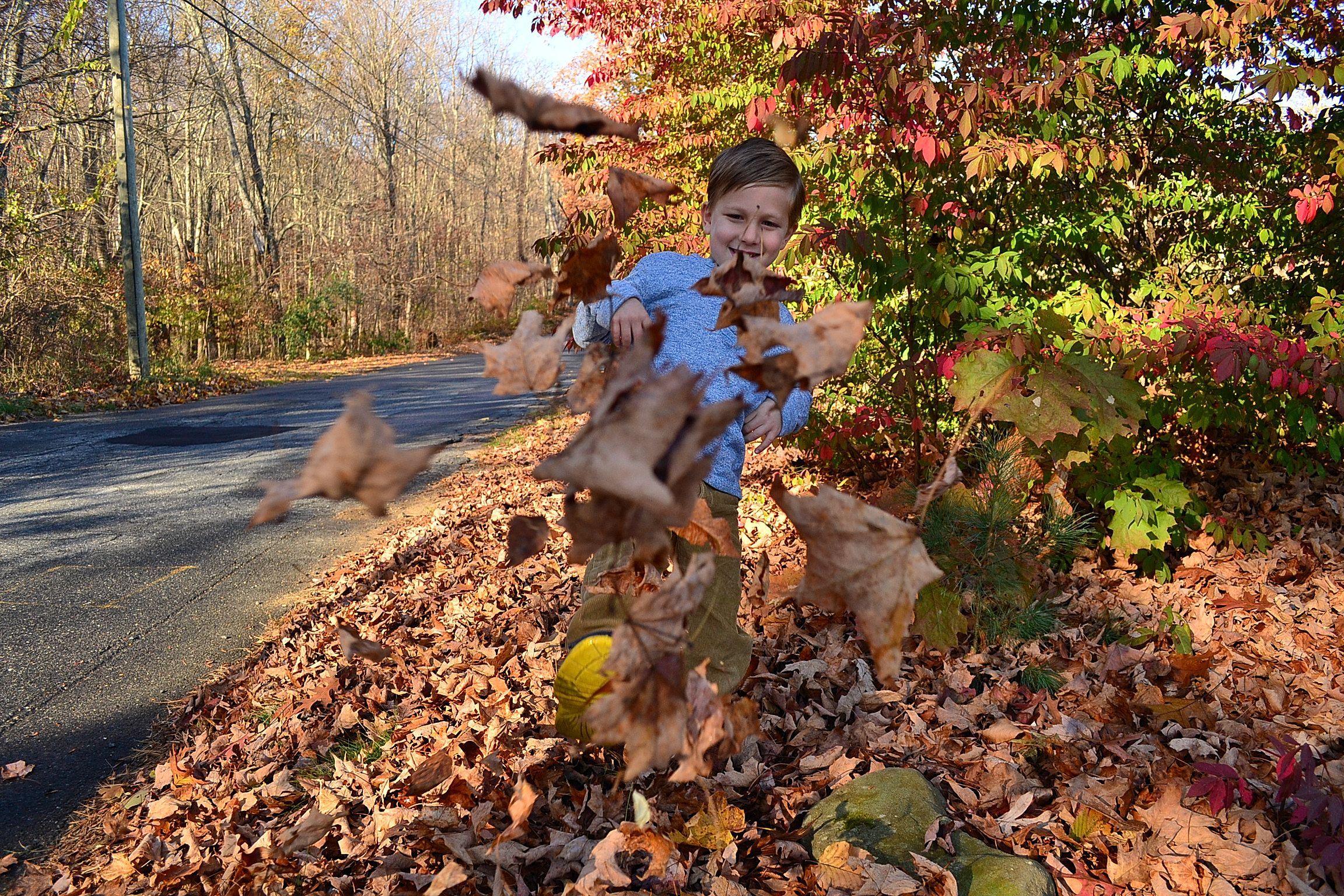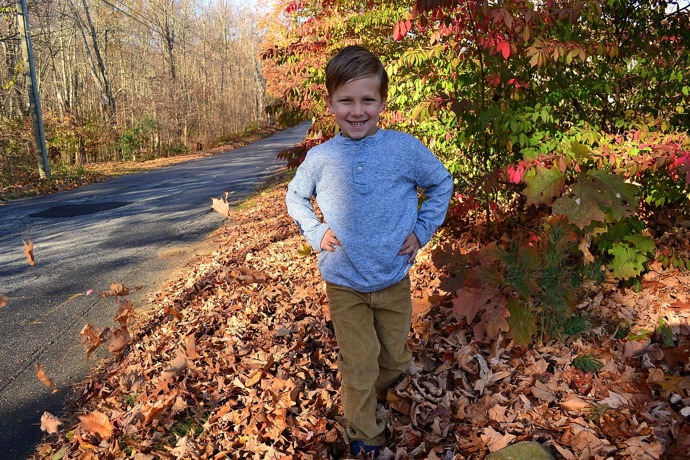 Those are amazing candid shots of Seth in church, and the photos of him in the leaves are sweet, too. He’s a handsome little guy.