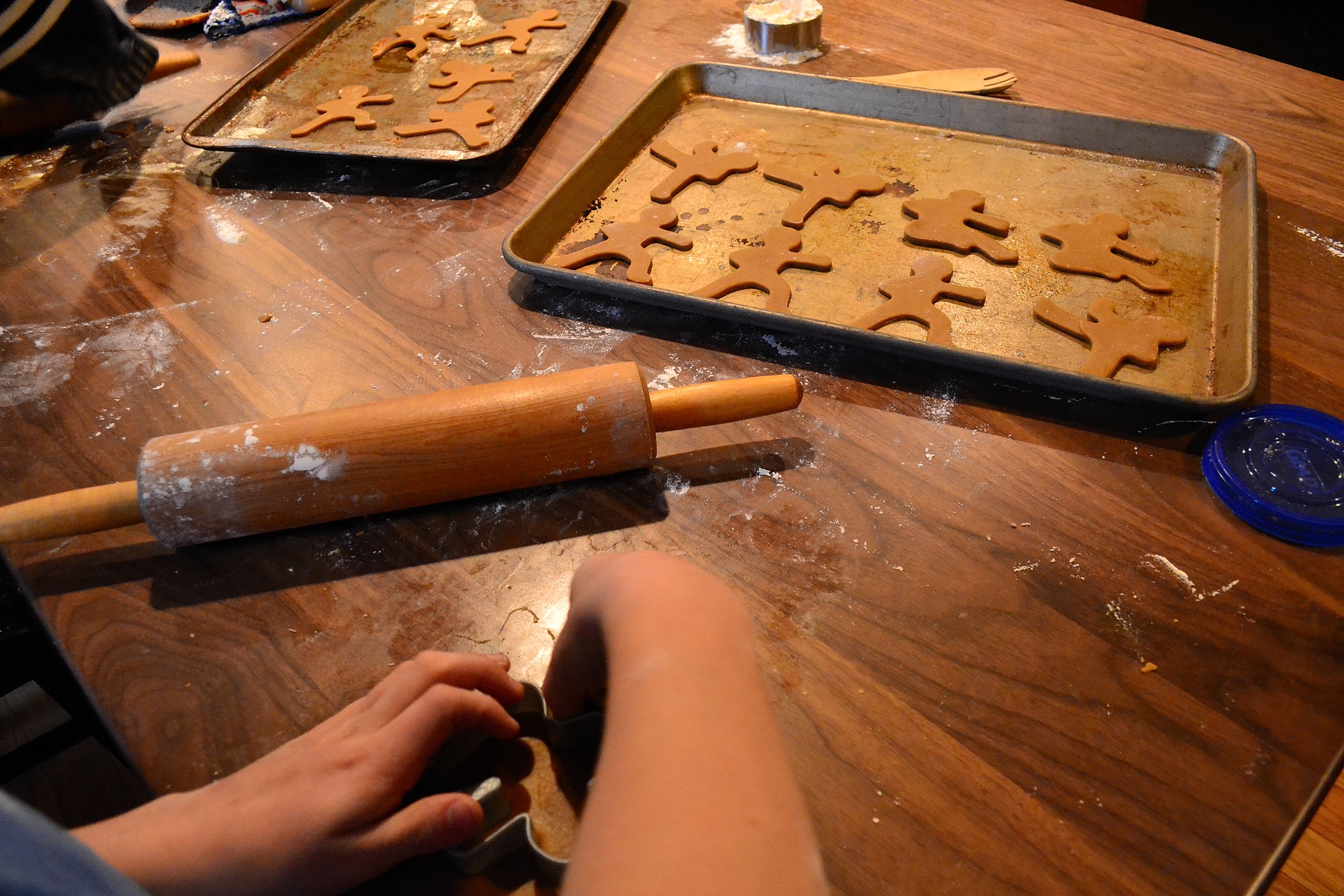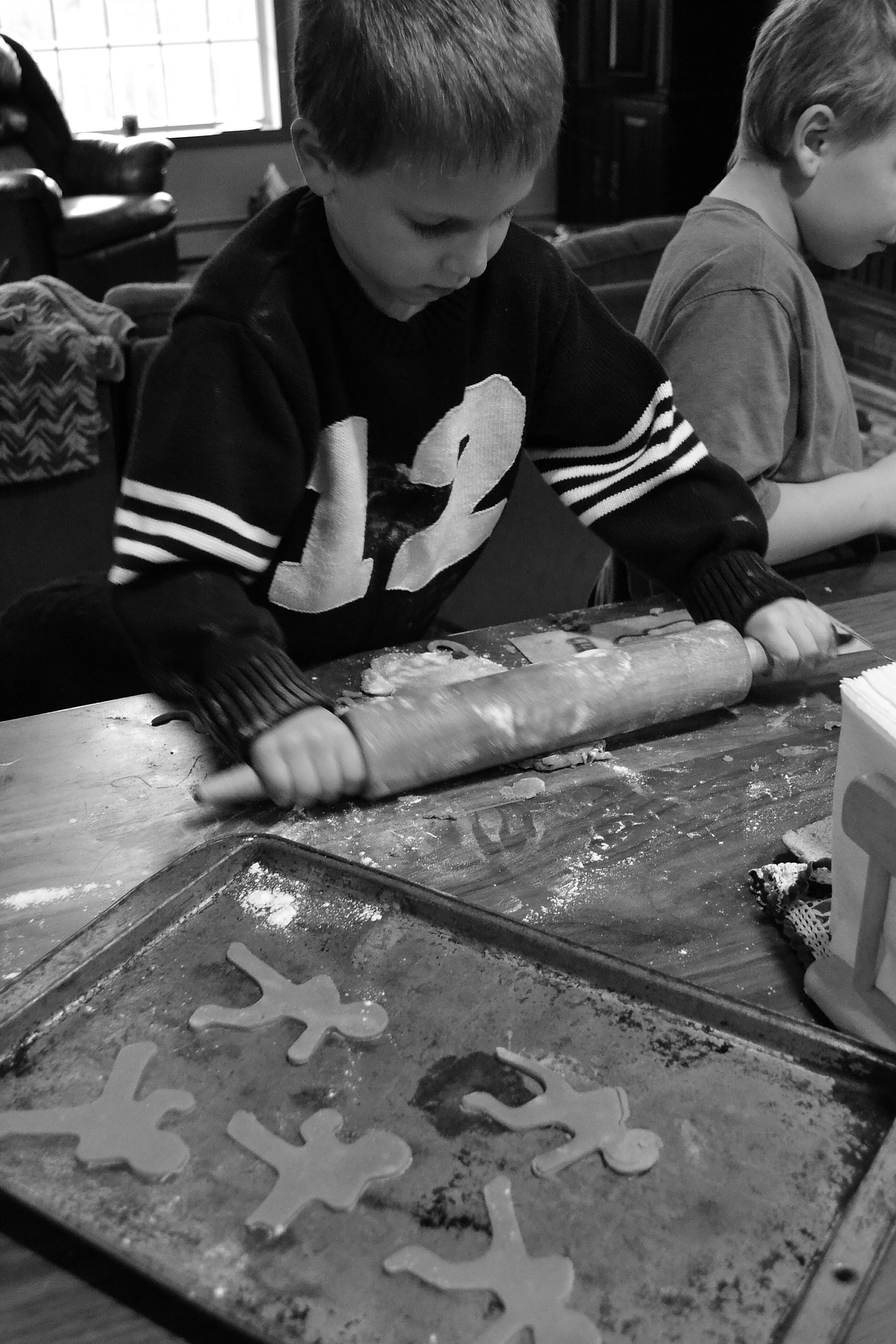 We mixed up gingerbread dough and by the time David and Caleb came home it was cold enough to work with.