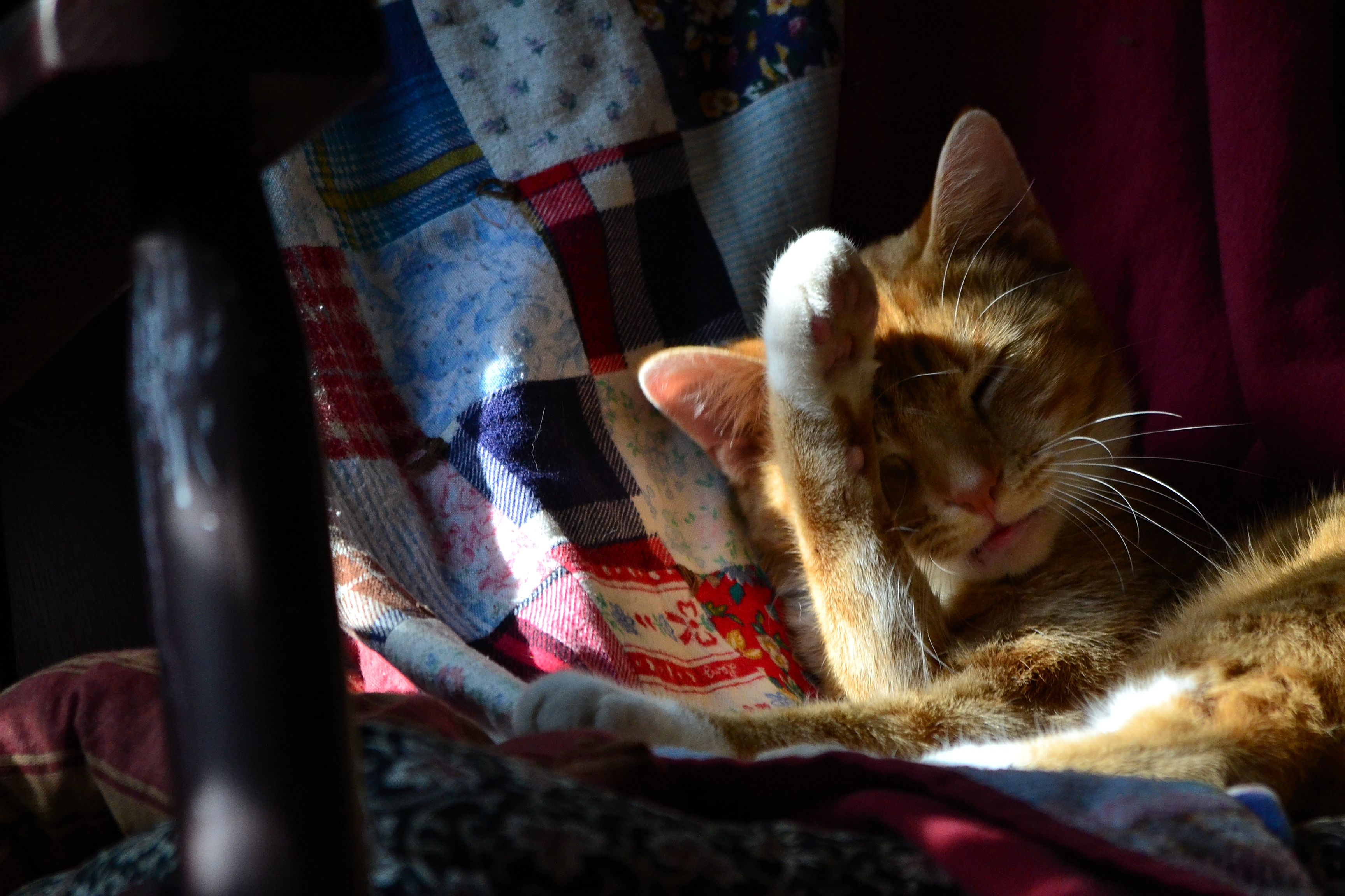 Sherlock washing his face in the sunshine.