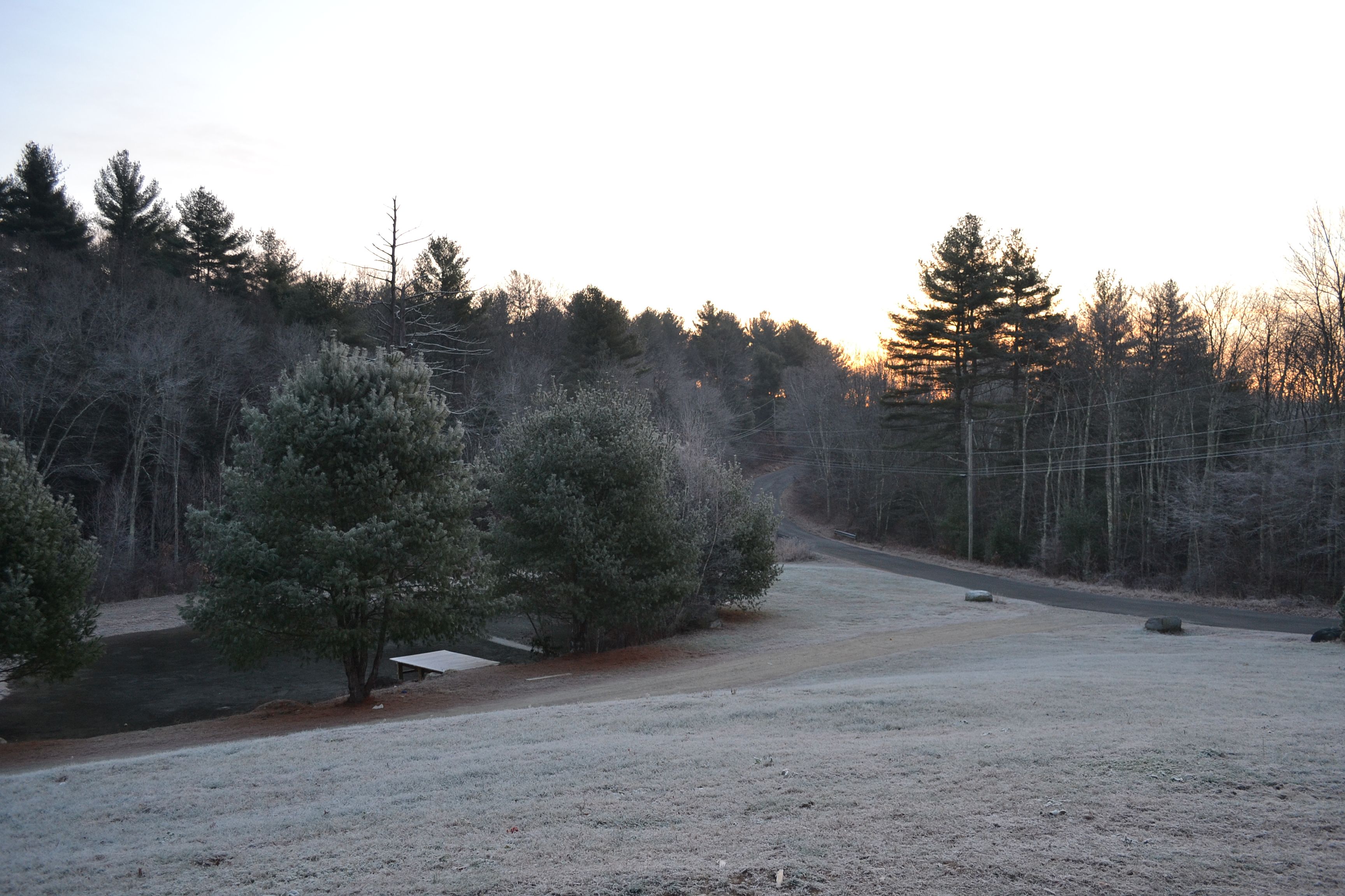 A frosty pearl of a morning.  Yesterday dawned clear and cold.  We left the house early for a day of Community Bible Study.