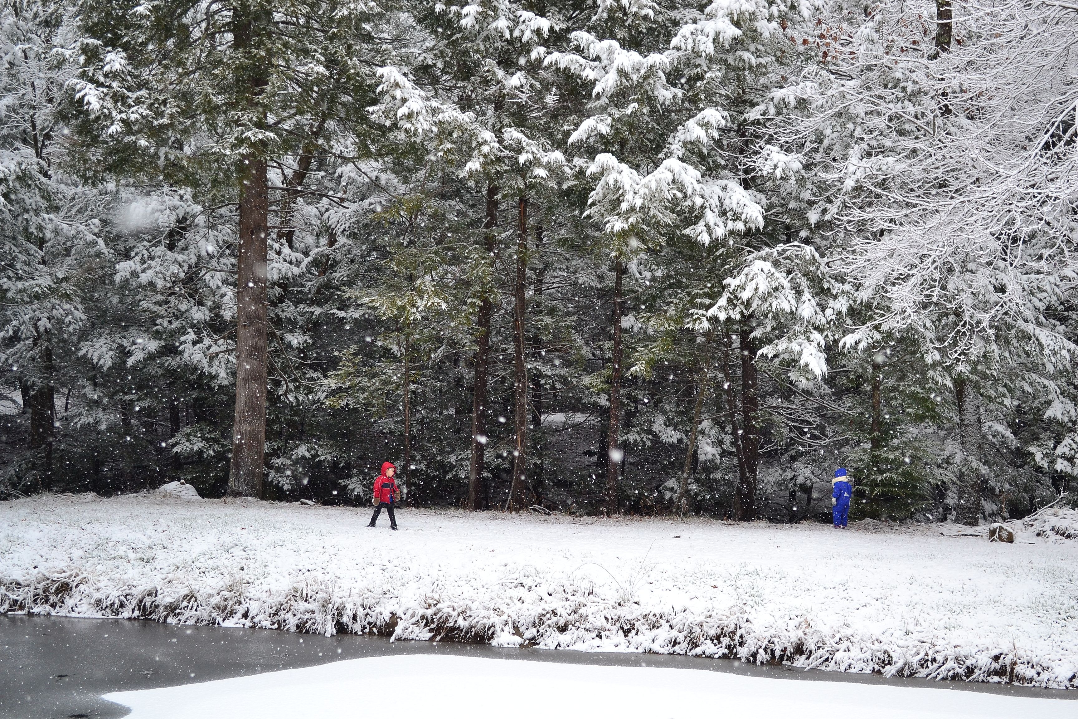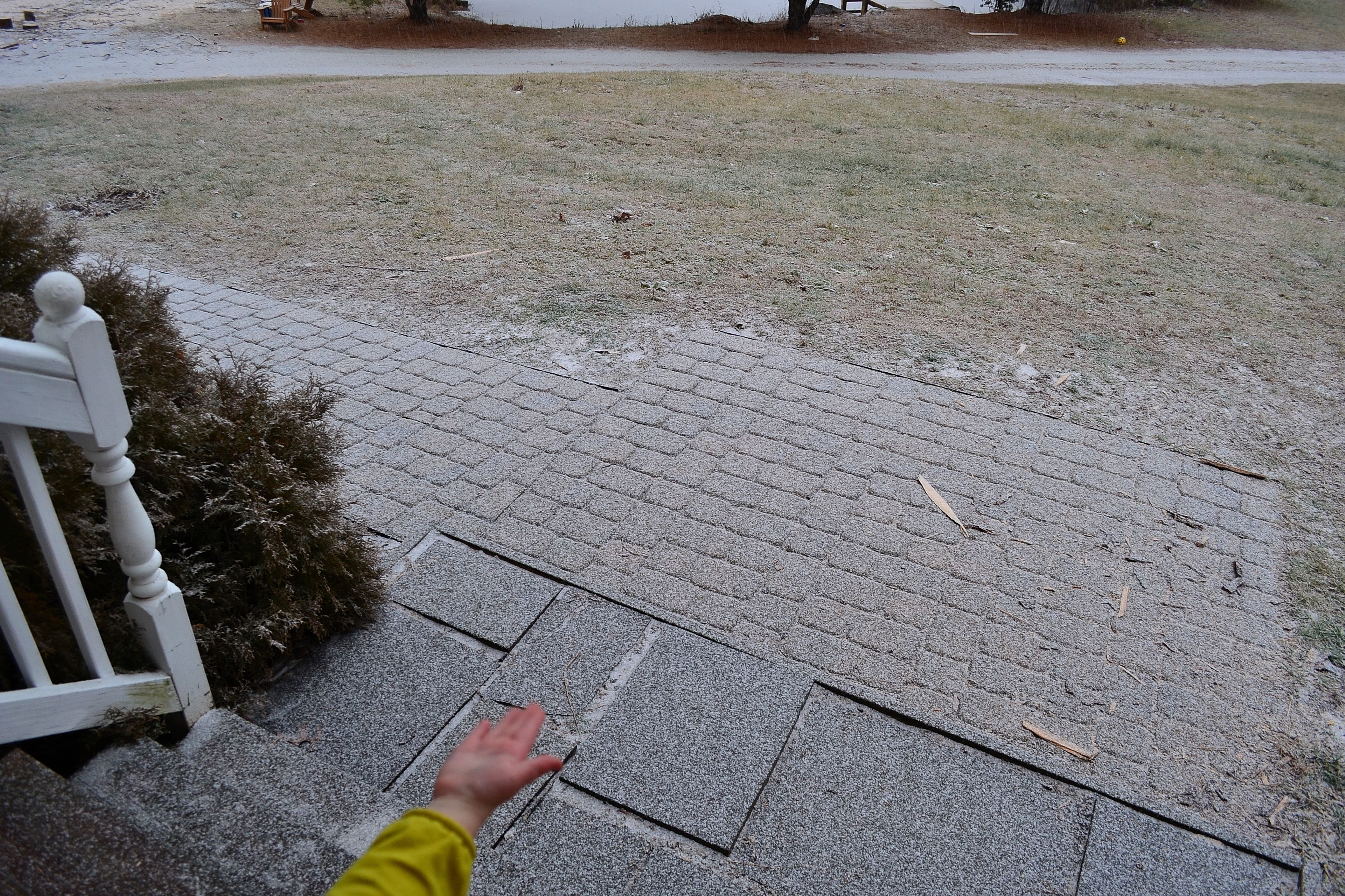 From the same spot on the porch, I took this picture just half an hour later…because my little Sarah said, “It’s snowing, you need to go *take a picture*”!