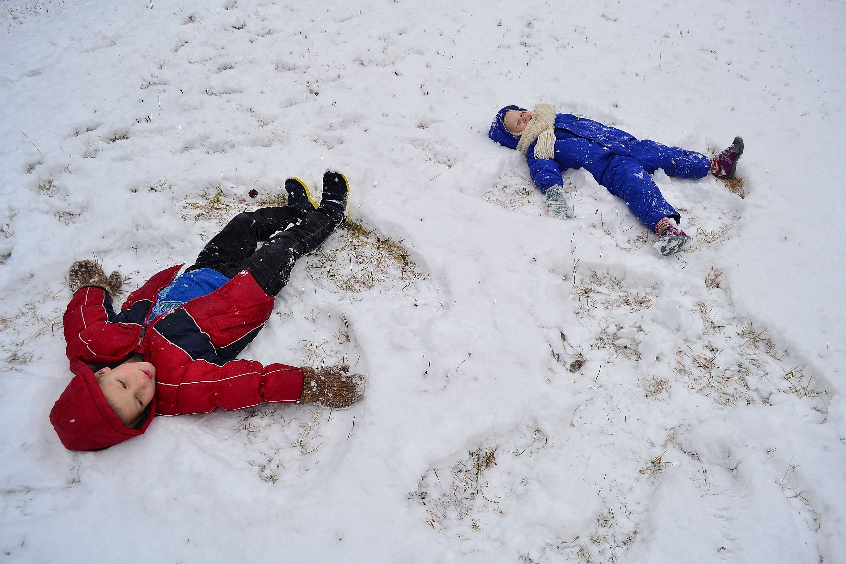 Then, after lunch, I took them outside to make snow angels, to eat the snow, to touch it.