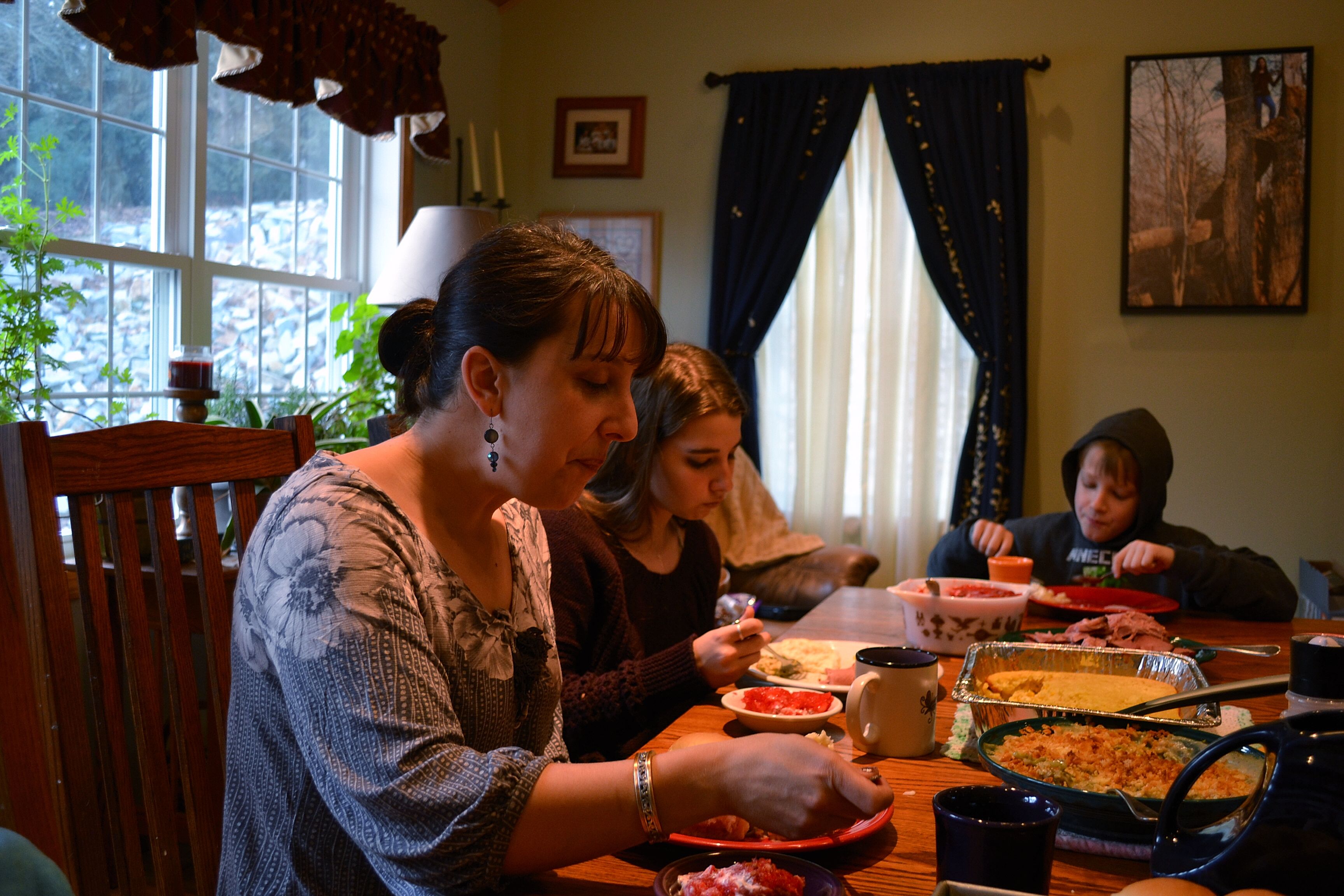 I’m in the new addition and a fire is quietly burning in the fire place.  I can look across the room and see that the light of this day *is gray, snow is falling, and the children came home early from school.  When I check the temperature on my phone, I see that it is 19 degrees, but we are warm as toast inside.  Rich cleaned out the wood pellet stove so a fire is going in the livingroom, too.  Ethan is on the floor in front of it with his dog, playing video games.