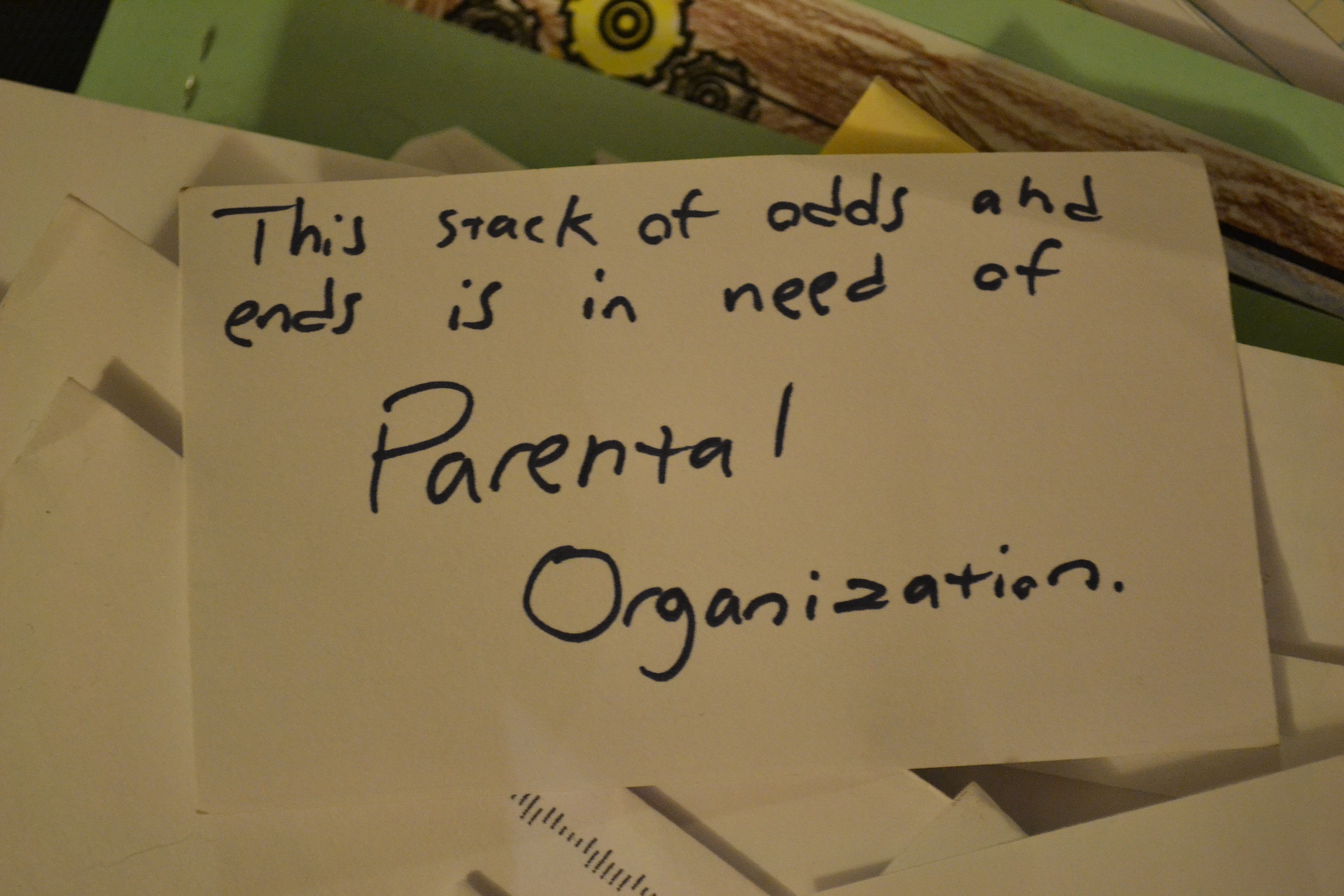 Jacob cleaned the kitchen the other day, he cleaned it spotless, and one of his techniques was to take the everlasting four inch pile of mail, school papers, and other papers and put it in my bedroom with this label on top.  LOL
