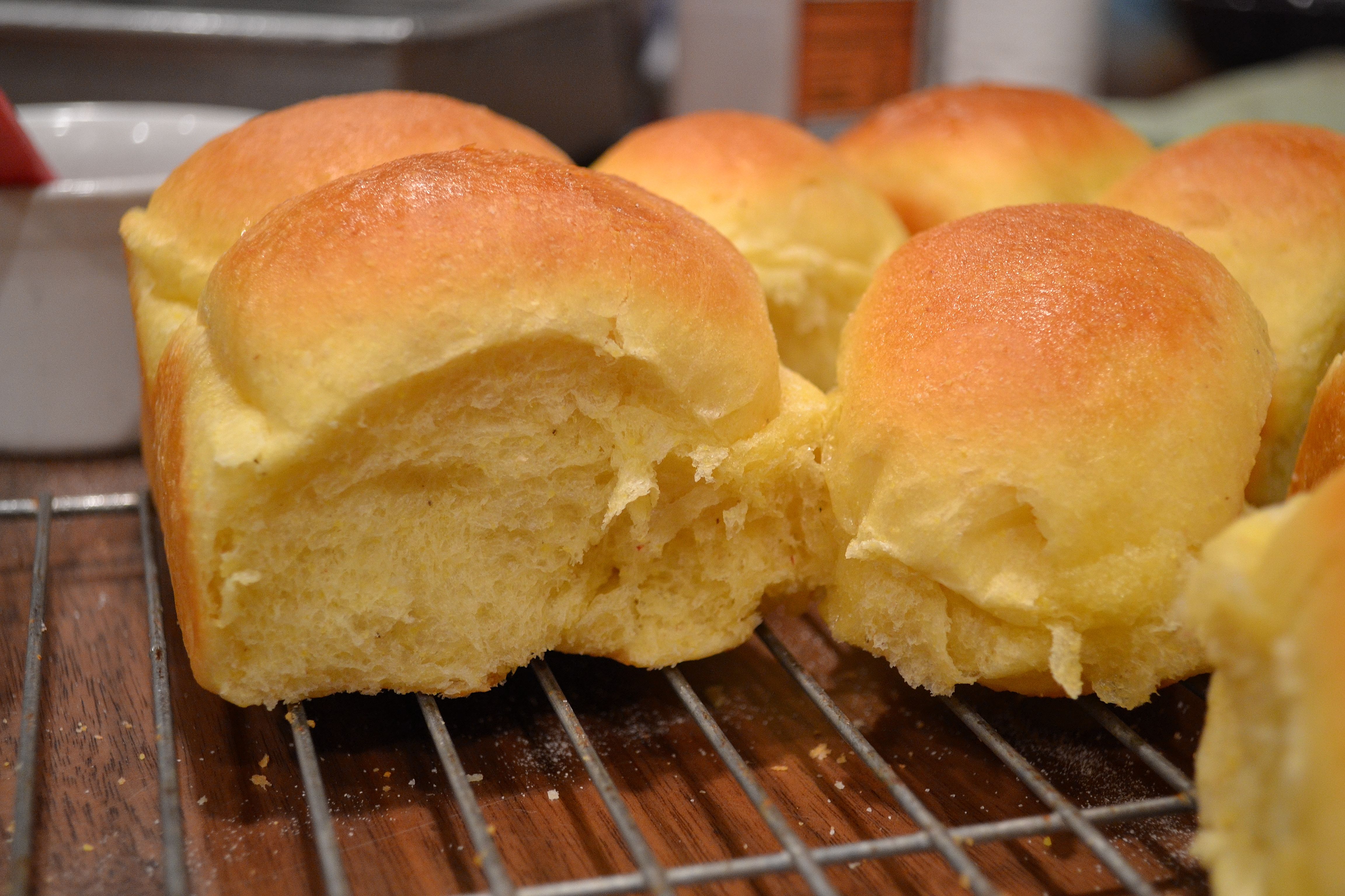 If I do say so myself, I knocked one out of the park yesterday at dinnertime.  I made fluffy cornmeal dinner rolls from a cookbook that Aunt Mary gave me years ago.  (please be advised, if you try the recipe, I had to add more milk (increase amount to 1 cup), this dough needs to stay somewhat sticky and soft in order for the rolls to be fluffy.  I used my kitchenaid to knead the dough.)