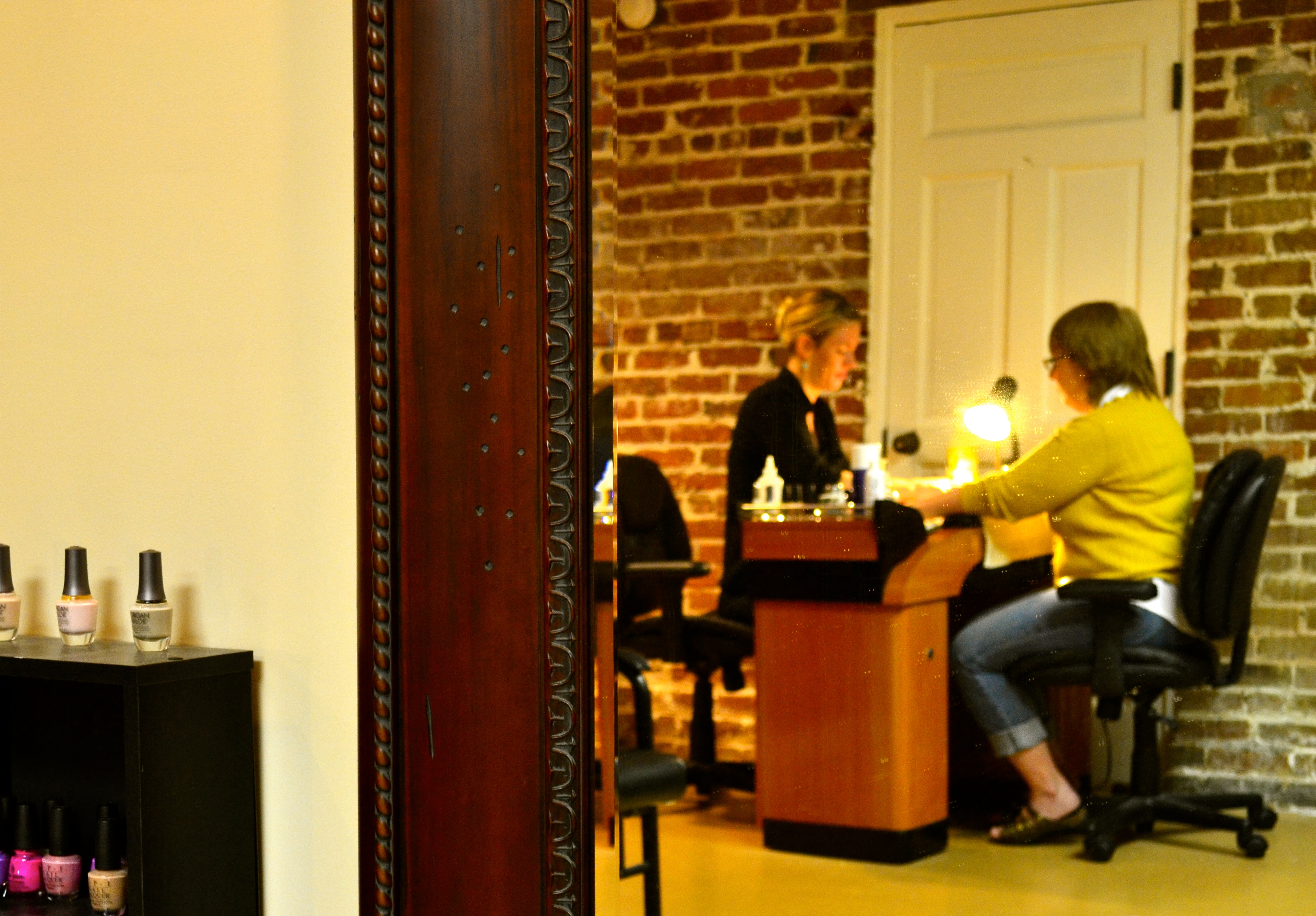 Mom got a french mani and pedi and I got a regular mani and a polish change on the toes. There was only one nail professional working so we sat through each other’s treatments. It was quiet and nice and no one else was around but the owner and she was fun and easy to talk to. The woman doing our nails was only 22, and calm and capable. My polish was OPI’s “Miami Beet” (such a fun name!)