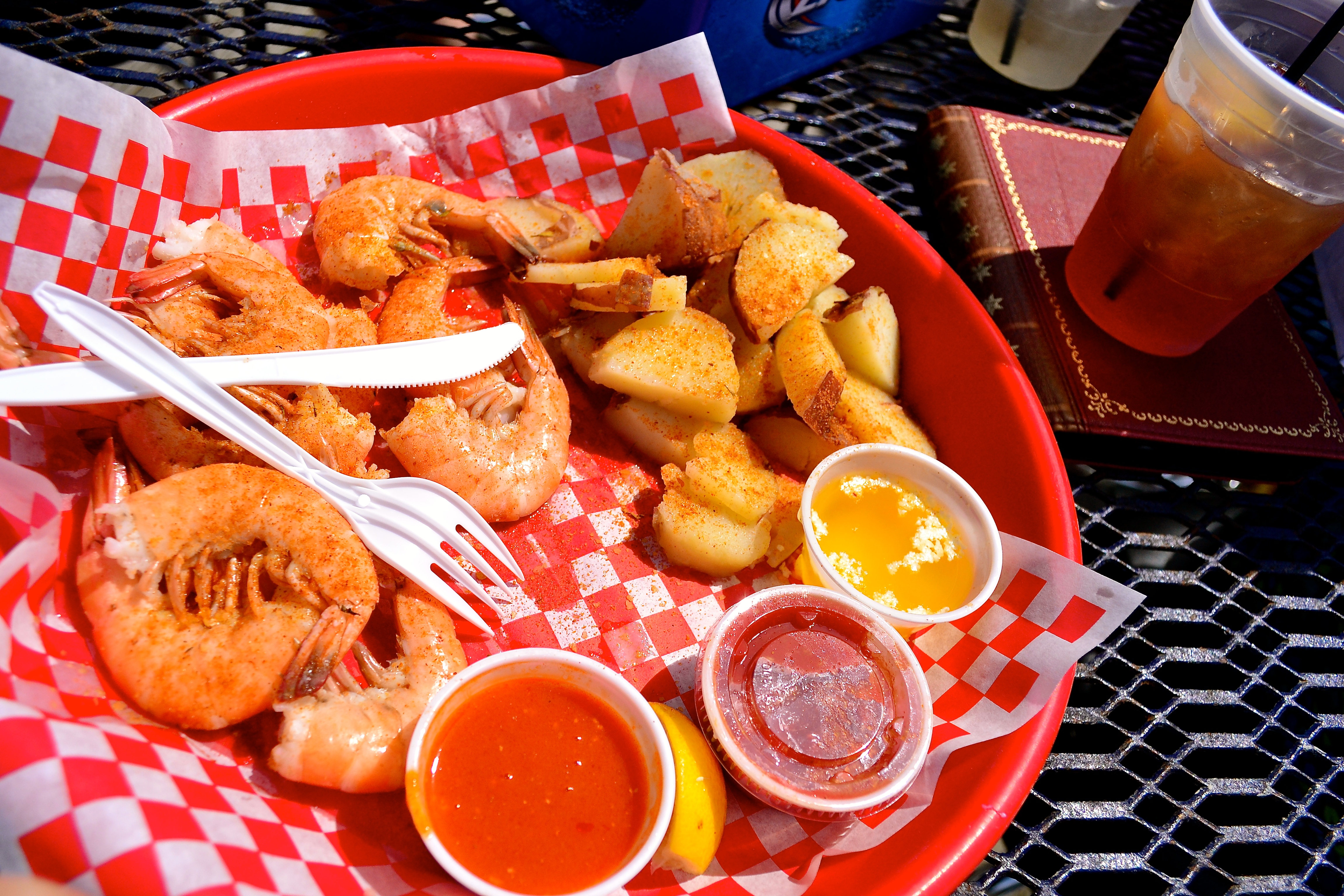 After our nails dried and we met back up with Dad, we went to the Rah Bar on a pier by the water. We had the most wonderful shrimp, I had a half pound of them with some red potatoes, and ice sweet tea.