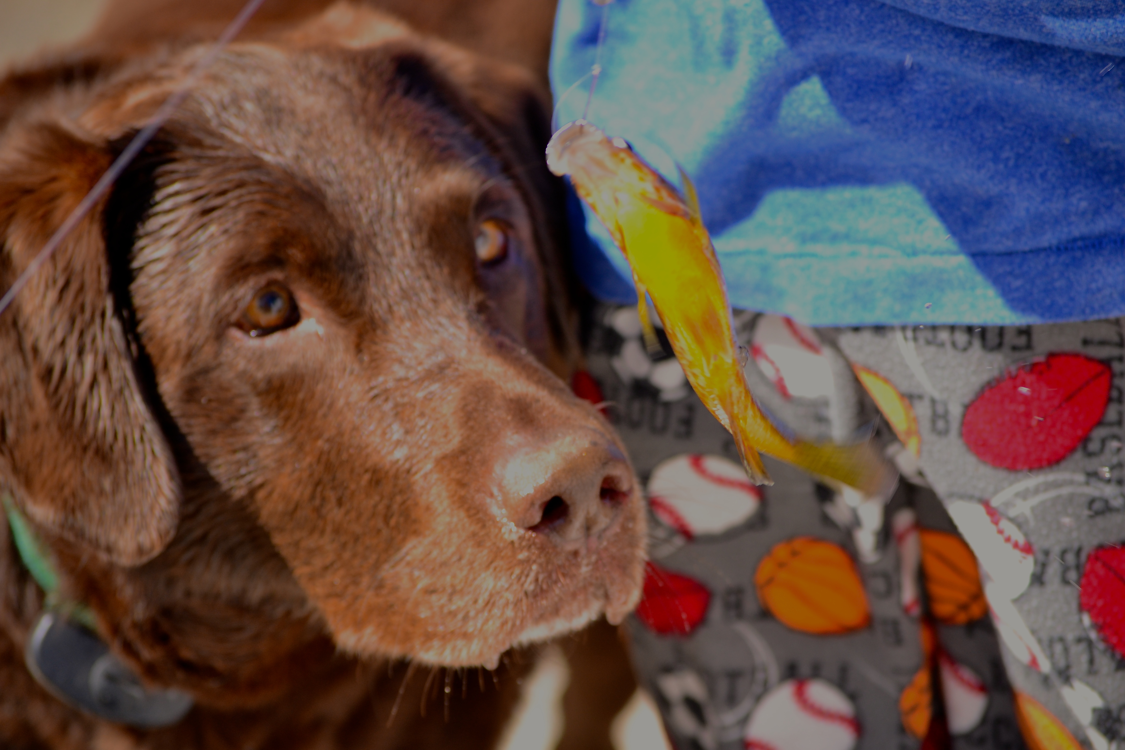 Isn’t Parker (the dog) funny?  The boys put their fish into a cooler (with buckets of water poured in it) and Parker would stand and look with his nose straight down at the swimming fish.  If we let him, he would catch them in his jaws.  But the boys slam the lid down every time.