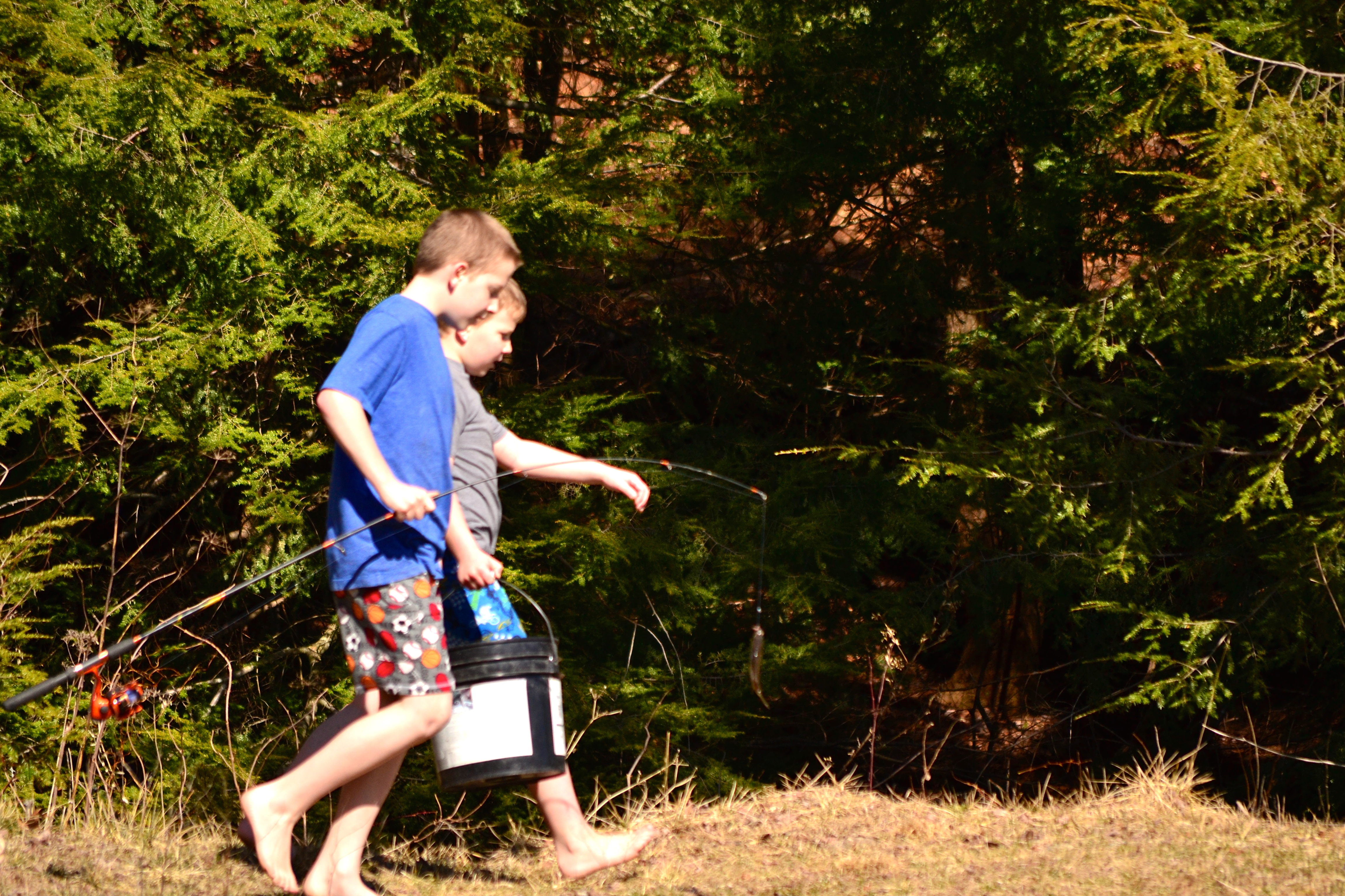 They were good companions all around the pond.  They caught five sunfish and threw them into the other pond.