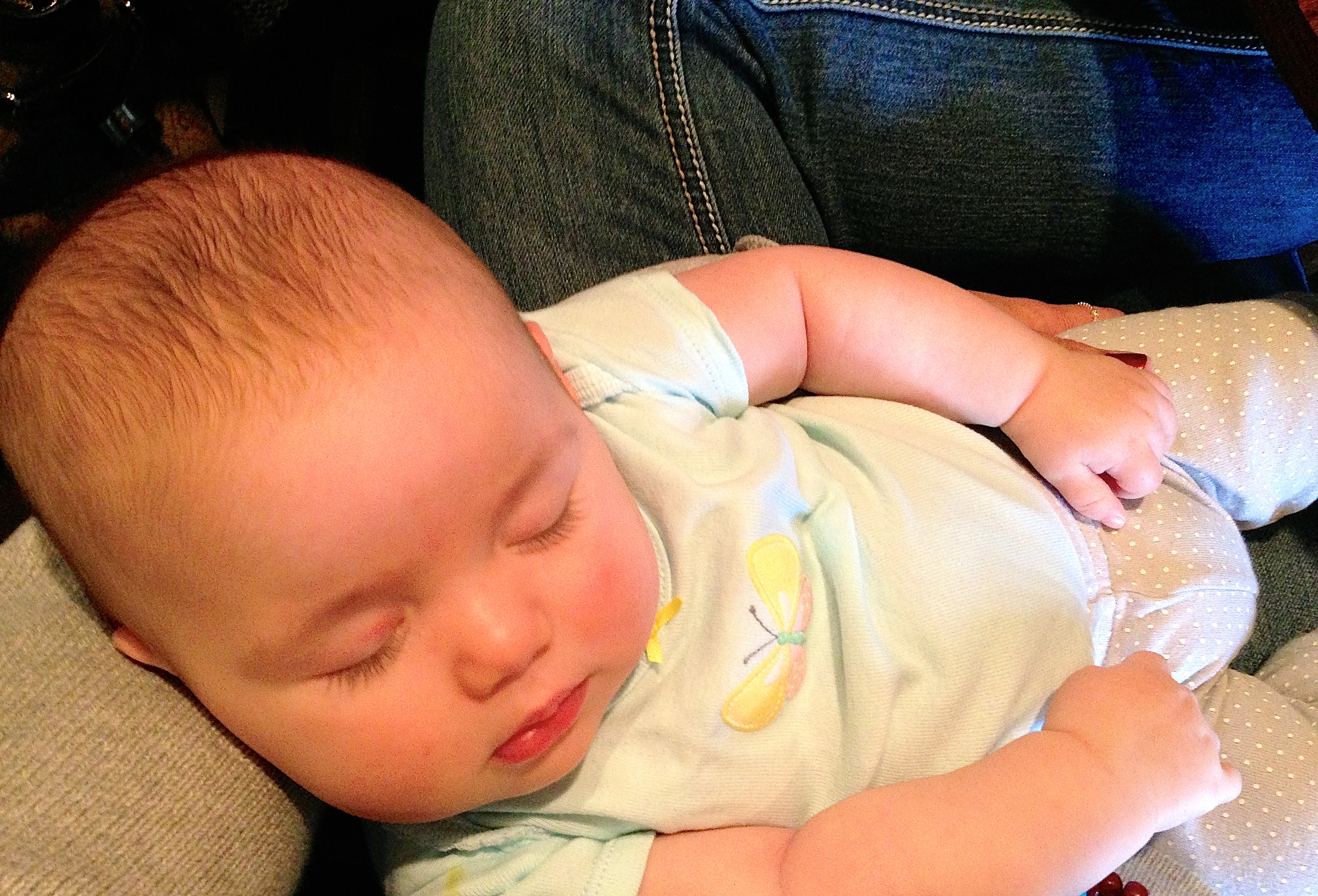 She fell asleep on me as her mama chatted away.  We sat and talked for a long time, our waitress was thoughtful enough to bring us fresh ice waters so we wouldn’t get parched.  She got a really good tip.  🙂