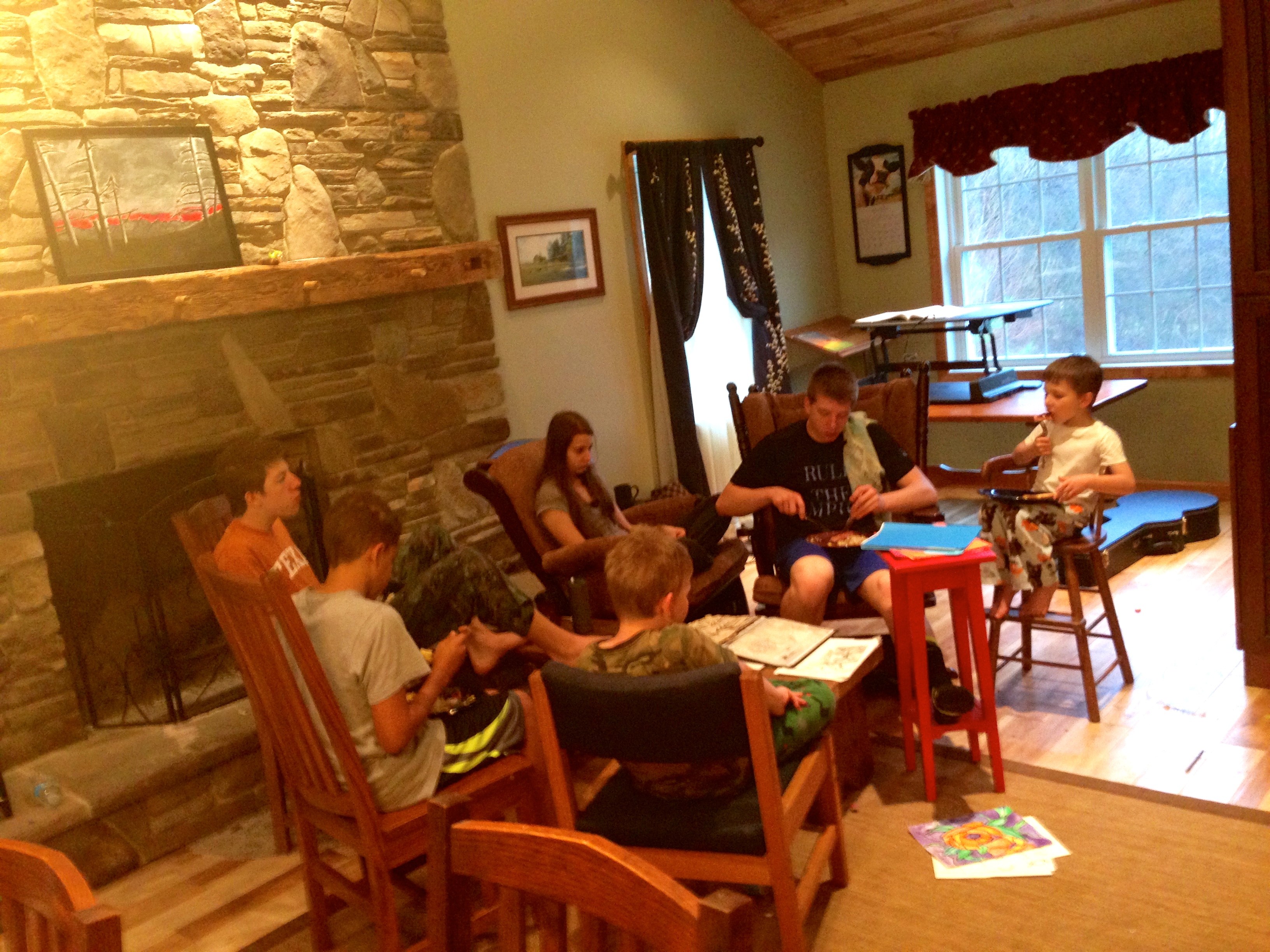 All the kids hung out together…Dave was home again and in his pj’s in the rocking chair.