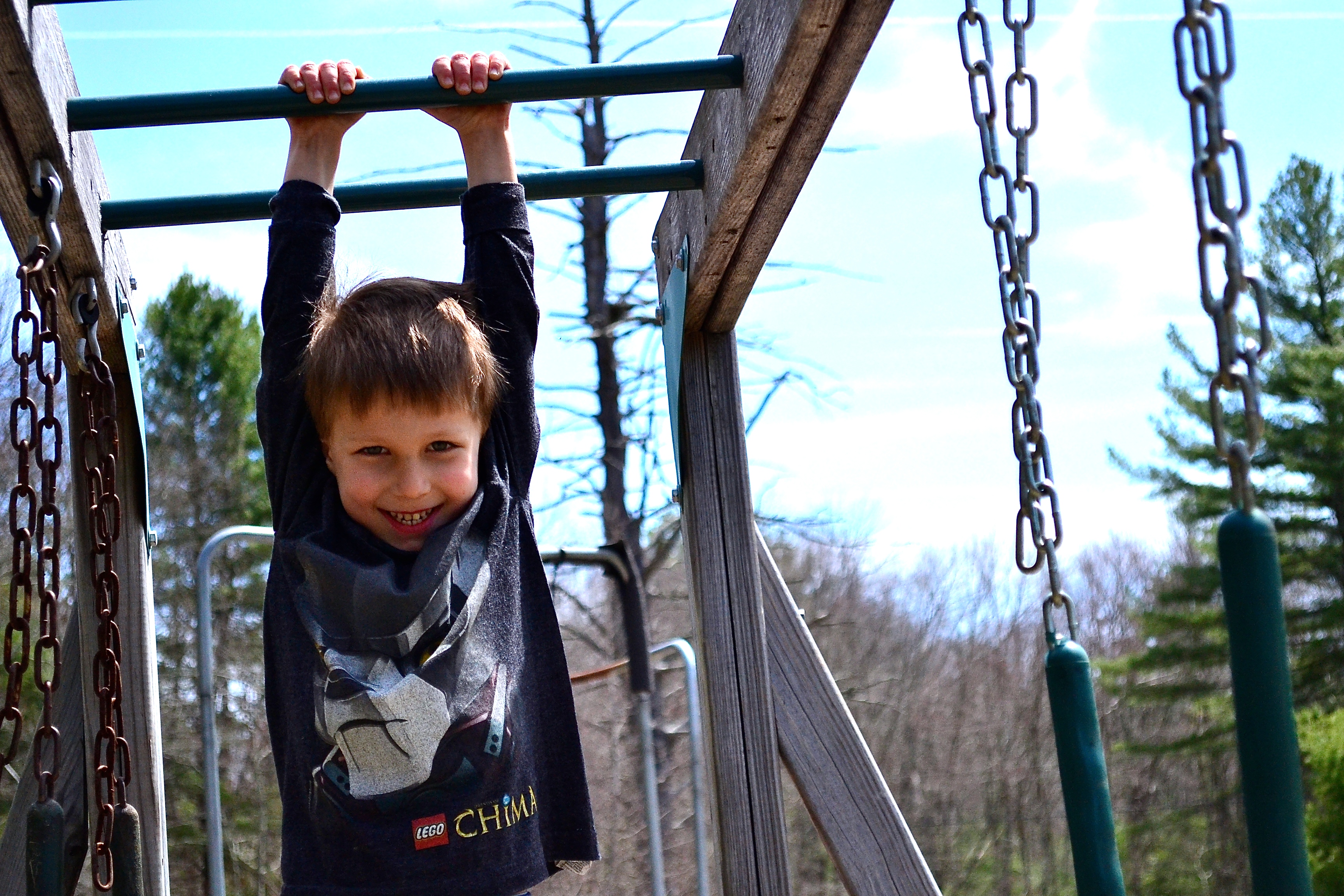 Seth goes across the monkey bars and I ask him if he can go all the way. He has to work, and I marvel at the bodies of young children, so light and mobile and strong.