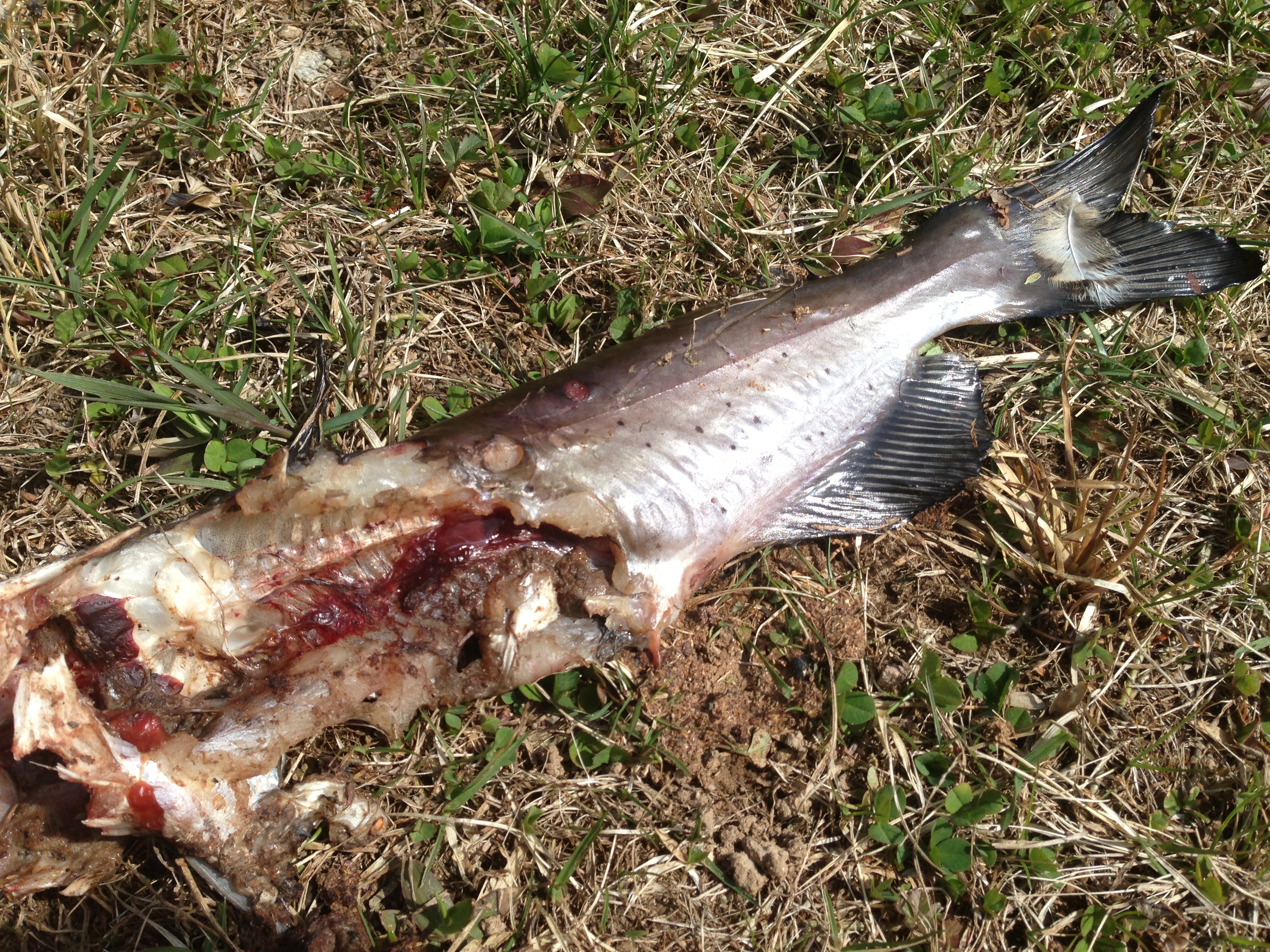 Something got this catfish out of our pond and killed it.  Rich and Ethan stocked them a couple years ago so we are sad about it.