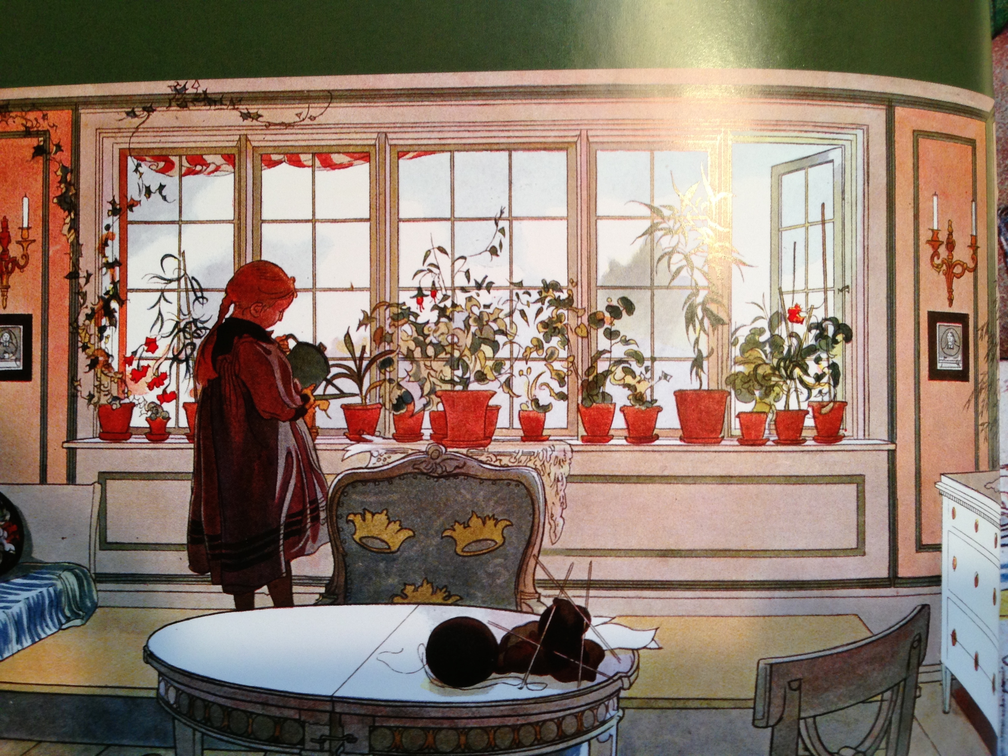 I saw this Carl Larsson painting this weekend and immediately wanted to repot my plants into unifying terra-cotta planters.