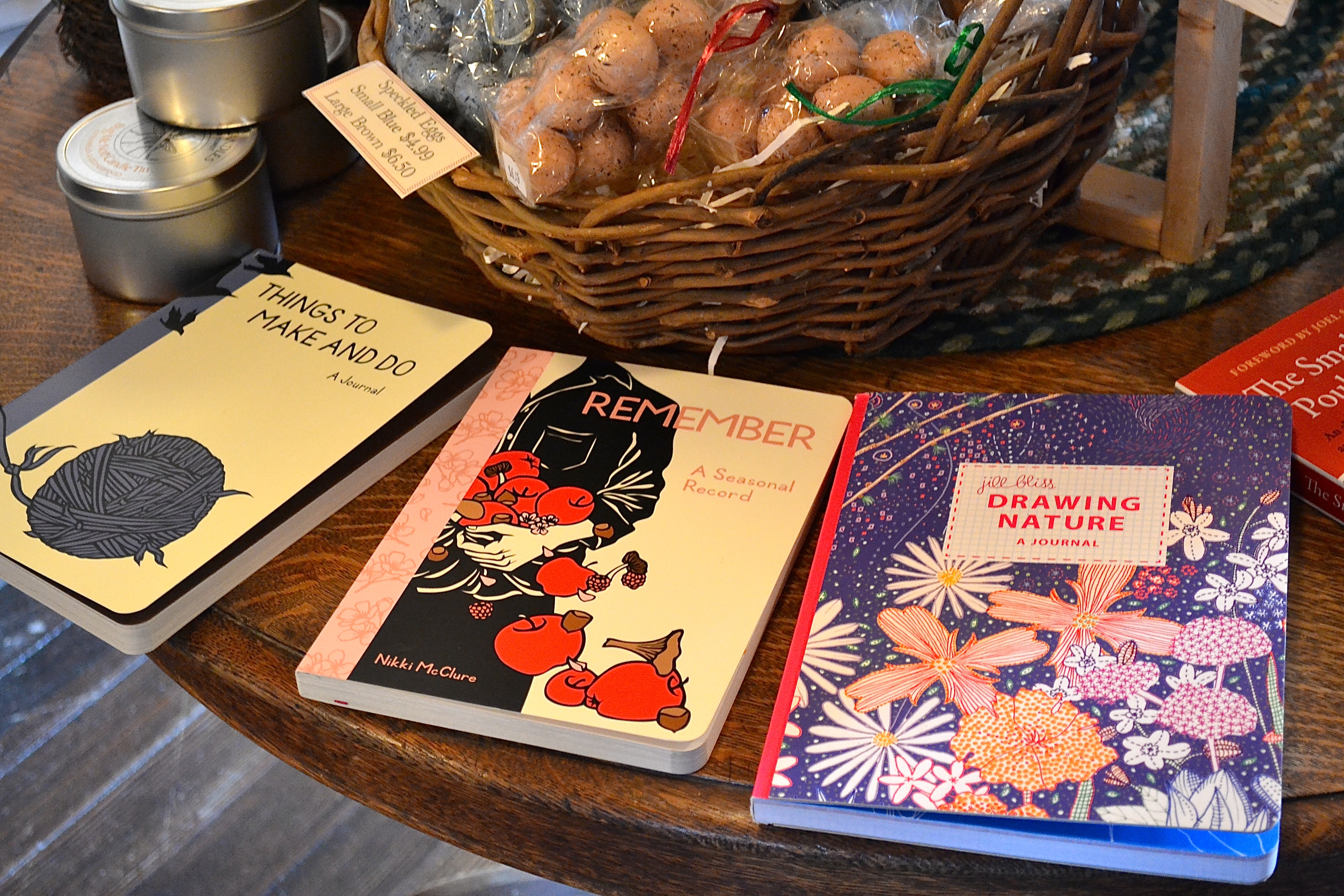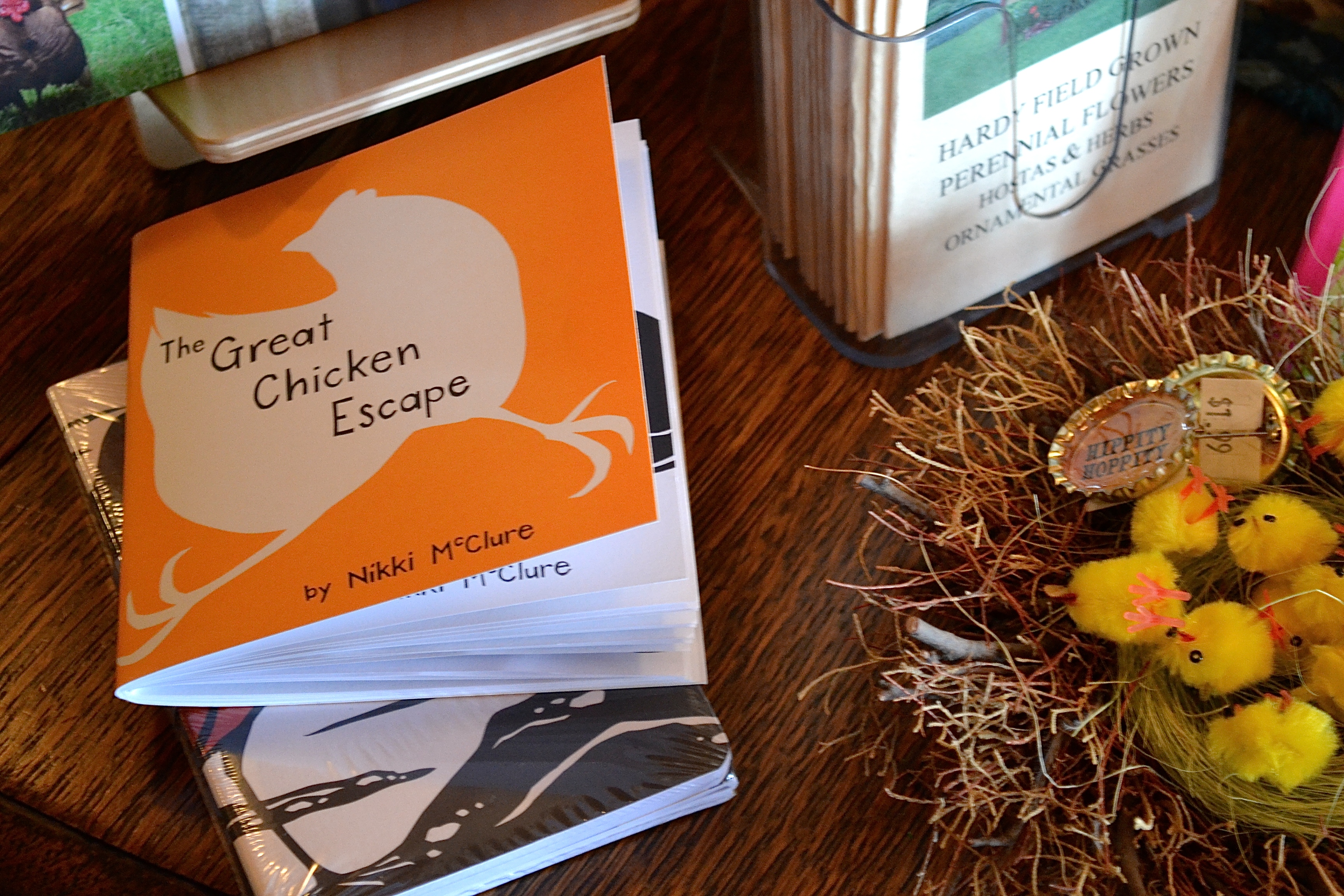 I found a new artist to admire; Nikki McClure. The store had several of her works, including note cards, prints, and this darling little book. We have had a flock of chickens for about 5 years so anything “chicken” related always excites me.