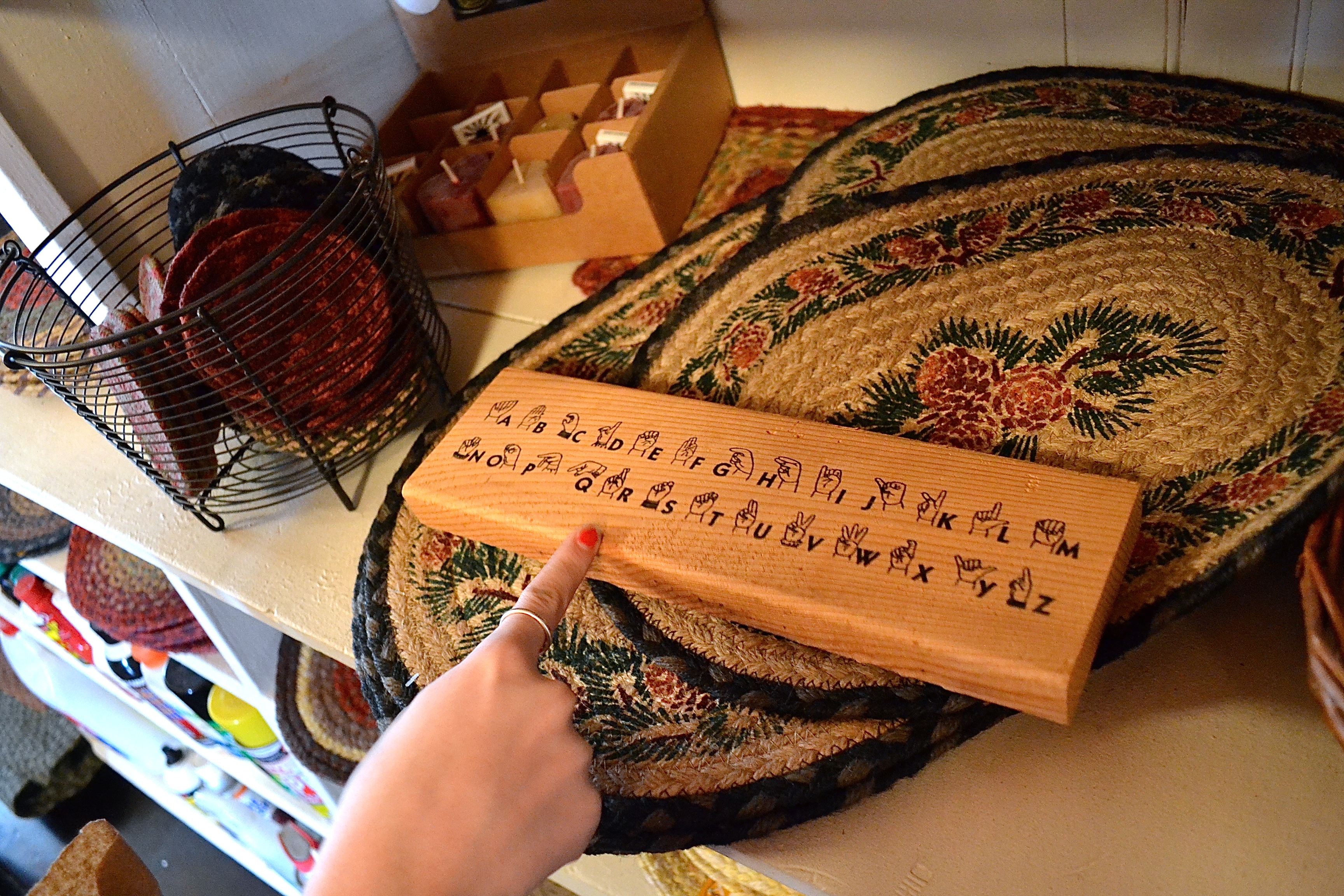 My little sign language lover found this ^^ and we bought it; hand signs for the entire alphabet.